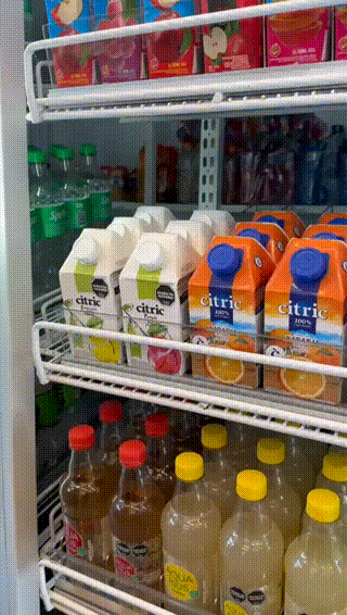 Los productos se deslizan solos hacia el frente, manteniendo la exhibición siempre ordenada.